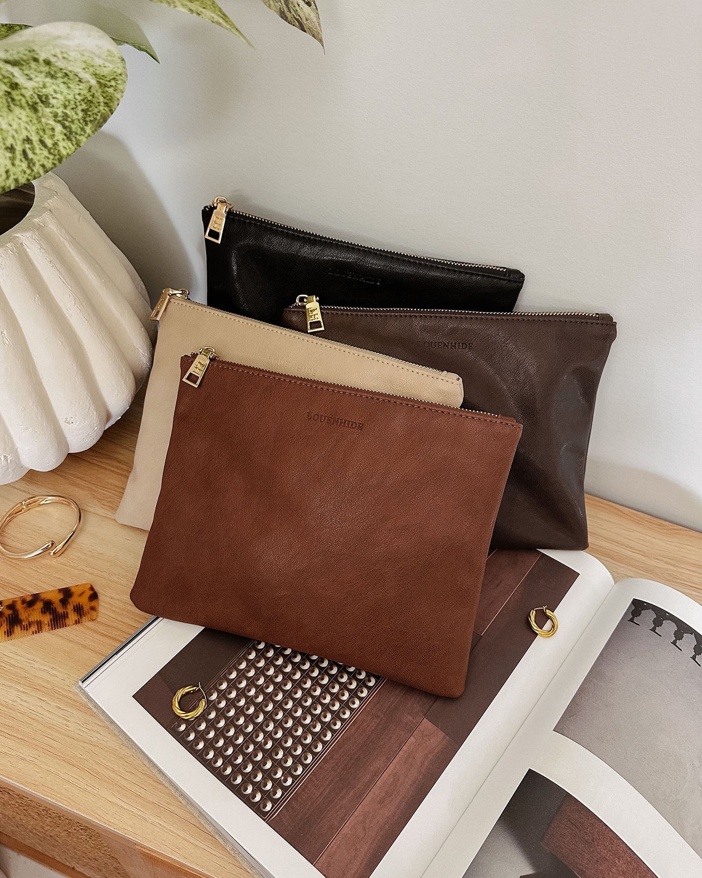 The Louie Saddle Malt Pouch is small, sleek, and always prepared. Think of her as the friend who keeps everything together- cards, cables, lip gloss, all sorted. Designed as a versatile bag organiser pouch and effortless zipper clutch, she adapts to whatever your day calls for. Crafted from smooth vegan leather with chic light gold detailing, she blends style with everyday practicality. Her RFID-blocking lining and secure zip closure keep your valuables protected, so you can step out feeling organised and effortlessly polished. Pop her into your favourite bag or carry her solo, Louie Saddle Malt makes every day feel a little more considered.