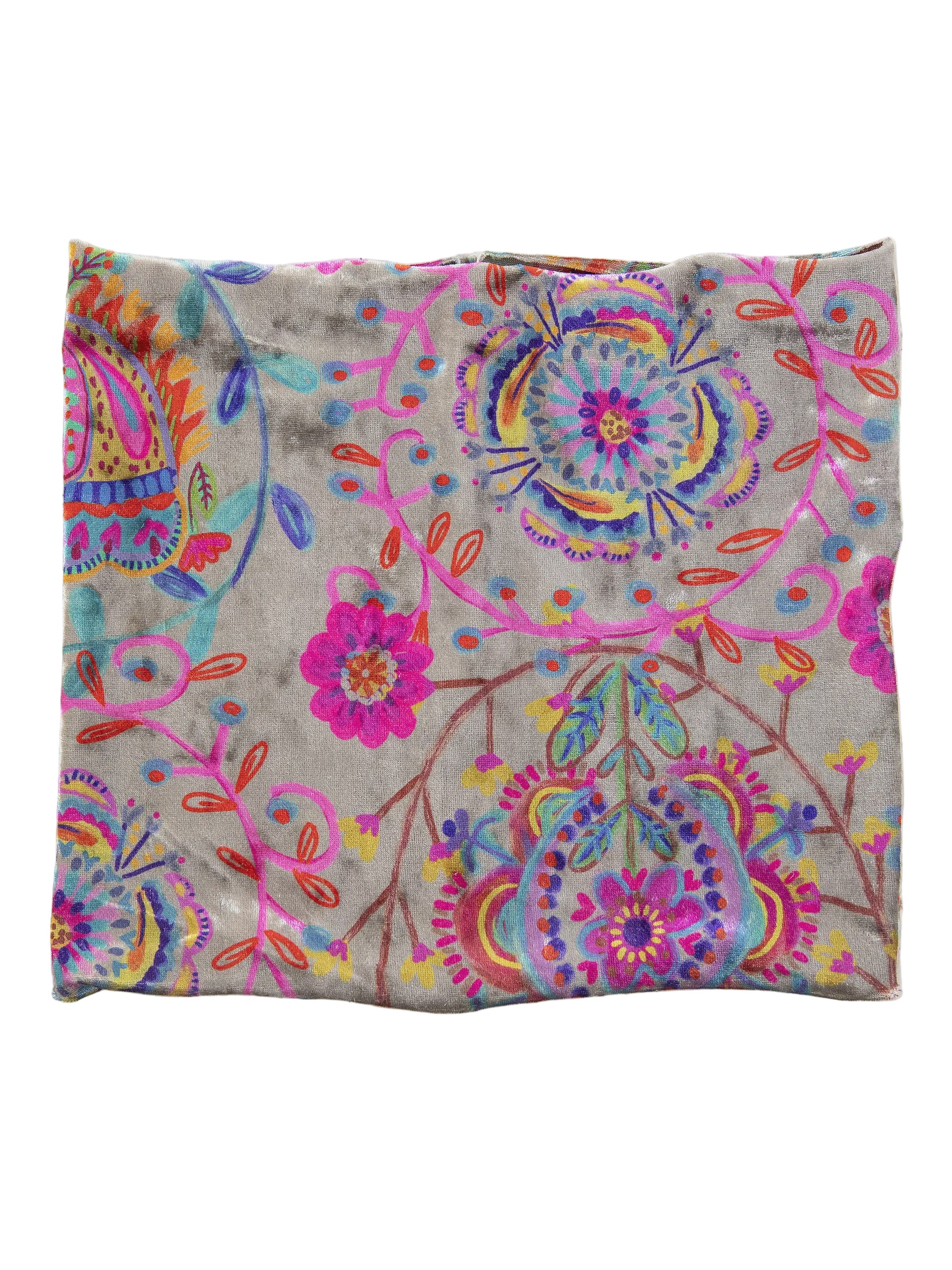 Boho Bandeau Velvet Black Print Folk Cream