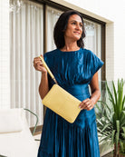 The Louenhide Mimi Lemon Clutch is a simple everyday clutch style. Designed in new season pastel colourways, this compact silhouette can effortlessly transform your style from day to night. Style and wear the webbing wristlet for a more casual everyday look, or interchange for the matching vegan leather wristlet to elevate your event attire. Made from a smooth vegan leather, this casual women's clutch offers ample space for all your essentials.