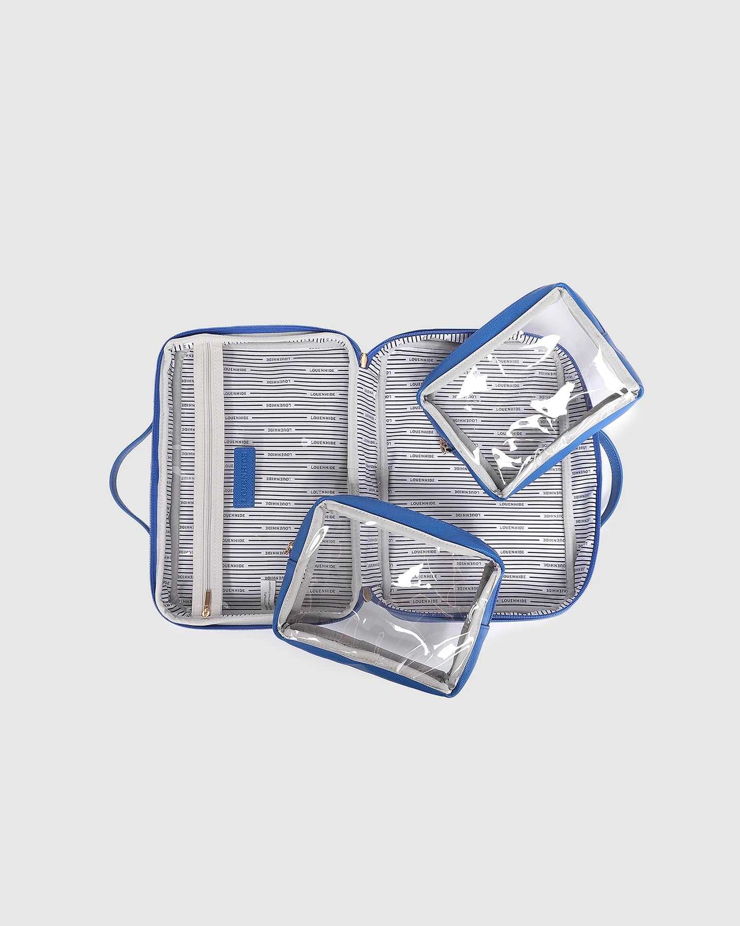 The Georgie Ocean Blue Cosmetic Case is the perfect travel companion offering an organisational solution for all your weekend and overnight getaways. The internal zipped compartments are a practical way to ensure you can organise all of your cosmetics functionally and store liquids safely. The structured design allows for easy transportability to make packing a breeze.