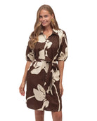 A timeless cotton mini dress featuring an exclusive chocolate and cream floral print. Designed with a relaxed silhouette and functional detailing, this style is effortless, breathable and easy to wear from day to evening.
