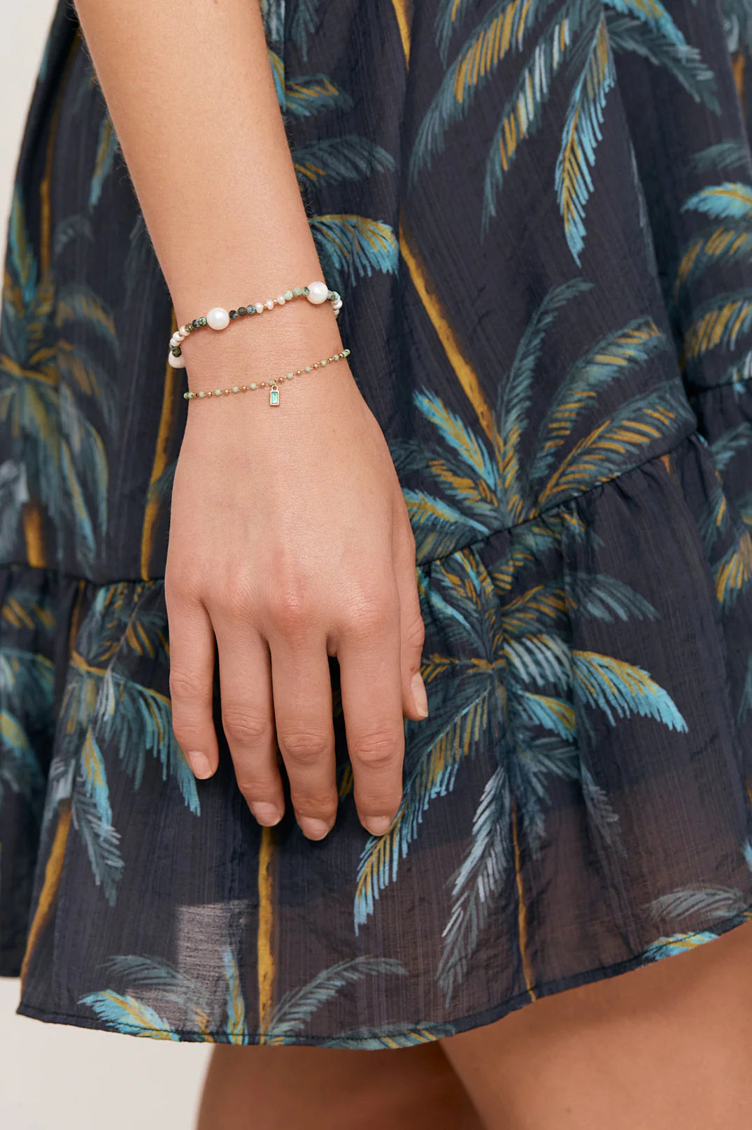 Alternating Bead Mini Charm Bracelet Mint/Gold