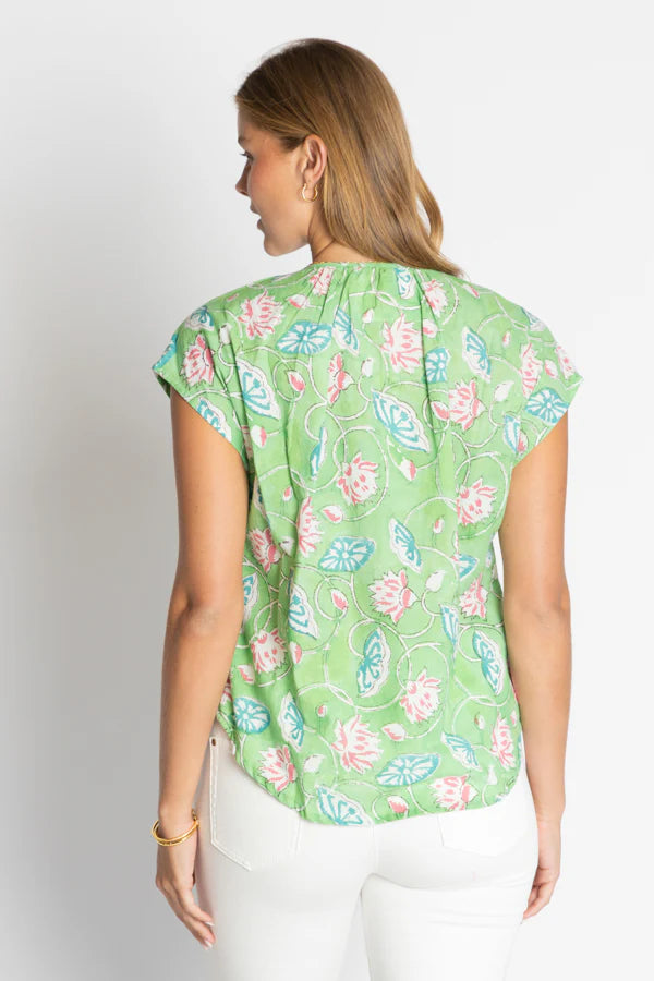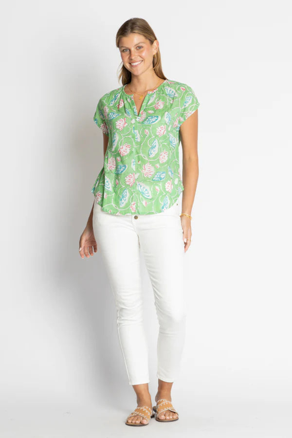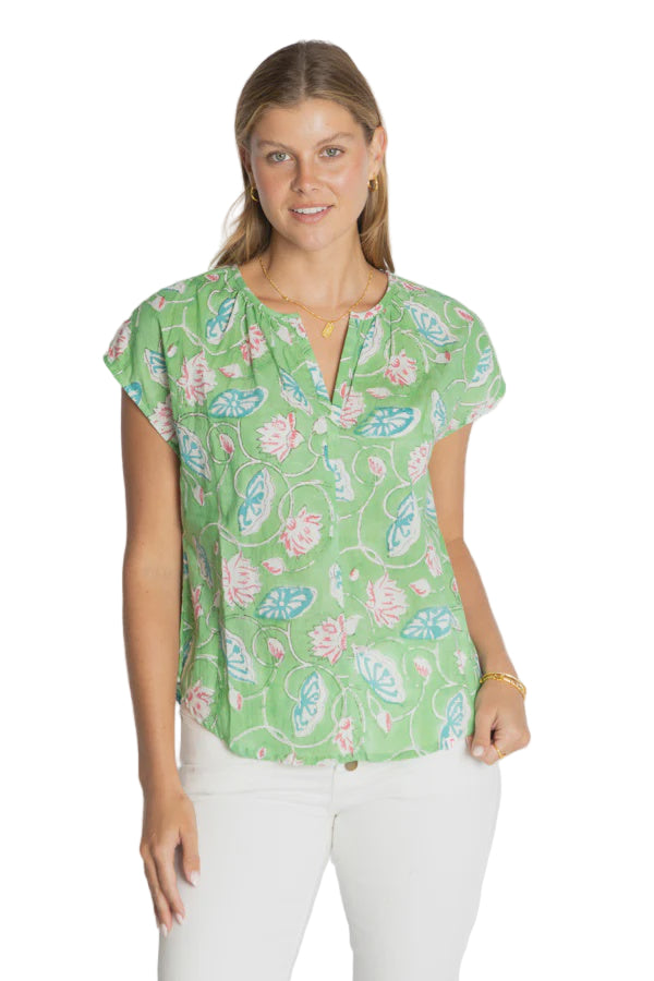 The IBSA Wyoming Top brings laid-back charm and everyday versatility to your wardrobe. Crafted from 100% cotton, this soft and breathable top features a round neckline with gentle gathers, a neat front tab, and capped sleeves for a flattering touch. The relaxed fit and curved hem create a beautifully draped silhouette that pairs perfectly with jeans, linen pants, or tailored shorts. Designed in Australia, this piece blends comfort and polish — ideal for both casual days and weekend outings.